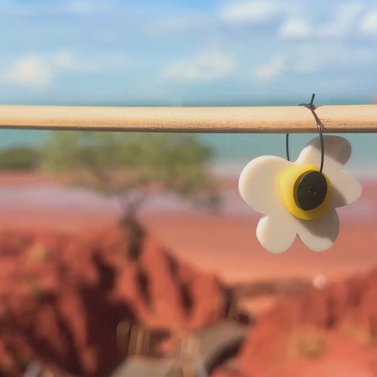 Handcrafted with love in Broome, Western Australia, these sweet acrylic beauties celebrate the simple joy of floral design. Perfect for adding a pop of sunshine to any outfit, these daisies will have everyone asking where you got them!